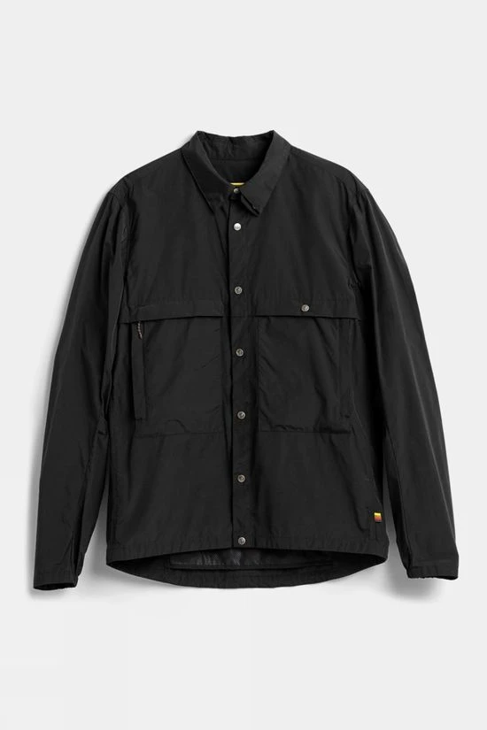 The jacket features a button-up collar for extra wind protection and articulated sleeves with elasticated cuffs optimised for bike riding. The multiple pockets offer extra spacious storage to carry essentials while on the go. Reflective stripes on the back provide additional safety. This jacket offers versatility and can be packed into its chest pocket when not needed. Part of the Fjällräven/Specialized series for urban rides and bikepacking adventures.