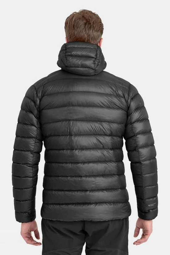 Crafted specifically for swift and lightweight adventures, the Menโs Alpine 850 Lite Down hooded jacket is a testament to meticulous engineering. This minimalist down jacket is adorned with recycled outer fabric and lining, showcasing a thoughtfully optimised baffle construction comprising mini baffles and premium goose down sourced from sustainable and ethical origins. The application of HyperDRY down, treated to enhance water repellency, stands out for its PFC-free nature, rendering the insulation up to 40 times more hydrophobic than untreated down and boasting four times faster drying. Whether engaged in brisk activities like fast packing in the Peaks, fell running in the Lake District, or ski touring in the Alps, this dependable down jacket ensures heightened thermal efficiency, ensuring warmth on the go. Weighing a mere 285g, the Alpine 850 impressively balances weight and warmth, and its compact design allows for effortless stowing in a stuff bag when the trail heats up.